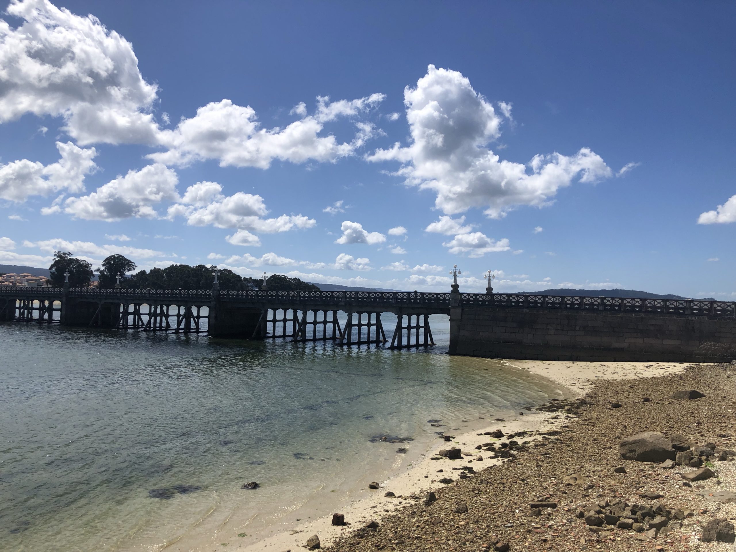Vanaf daar zijn we gelopen naar Illa da Toxa, een eilandje tegenover O Grove, via een brug van 200 meter. Haha dit was ooit de langste brug in Europa. In het Spaans is het Isla de la Toja, hier wordt alles nog in 2 talen op alle borden gezet. De tweede taal wordt bijna niet gesproken en is vaak bijna hetzelfde. Daardoor wel hele lappen tekst op bijvoorbeeld de verkeersborden langs de weg.