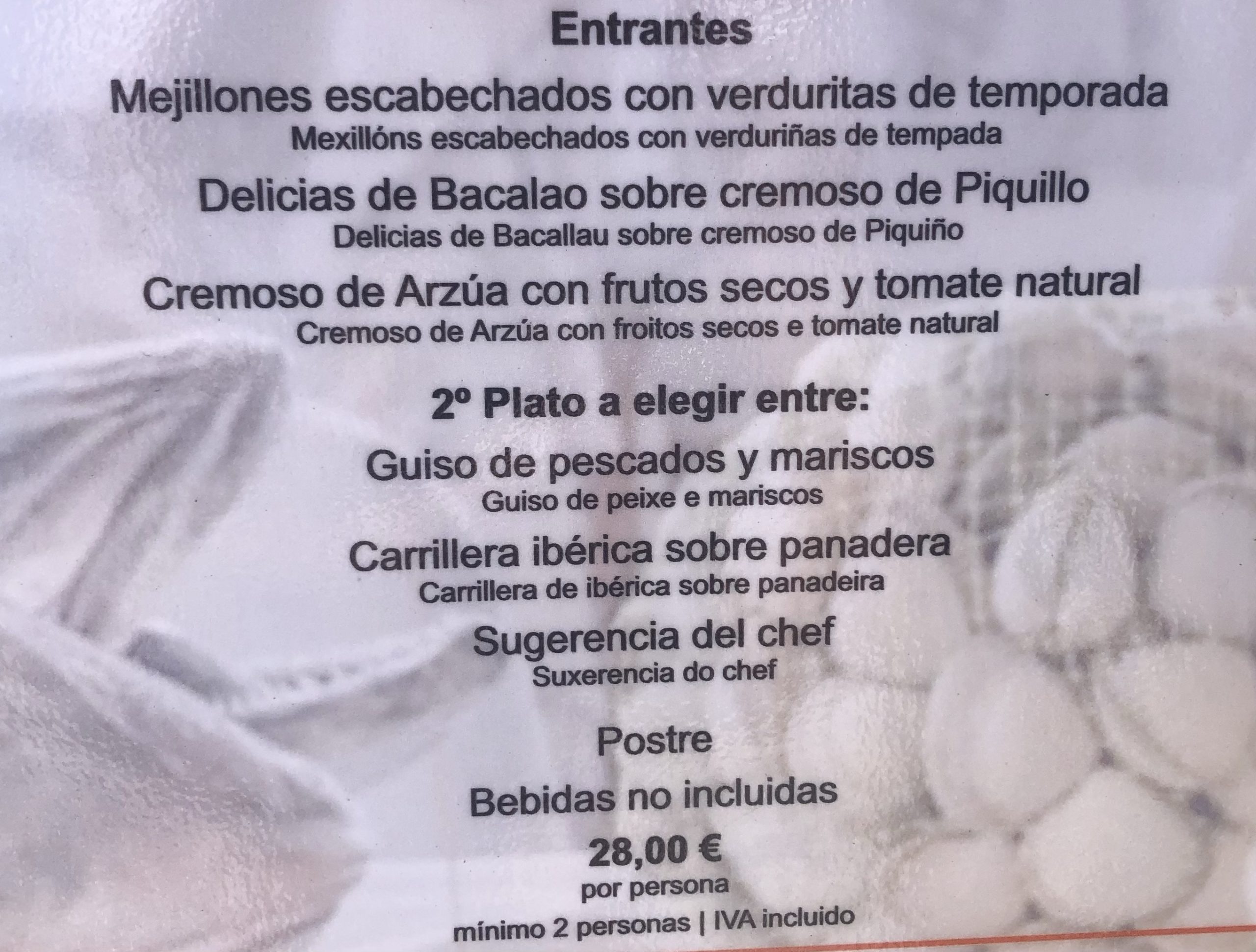Neergestreken in Pan de Millo. Daar was een menú degustación oftewel een proeverij. We kregen allerlei gerechtjes en allemaal even lekker. Een glas wijn (een lekkere Albariño uit de streek) kost hier €2,50. Dat zijn nog eens prijzen. In de restaurants lopen de bedienden trouwens overal nog met mondkapjes.
