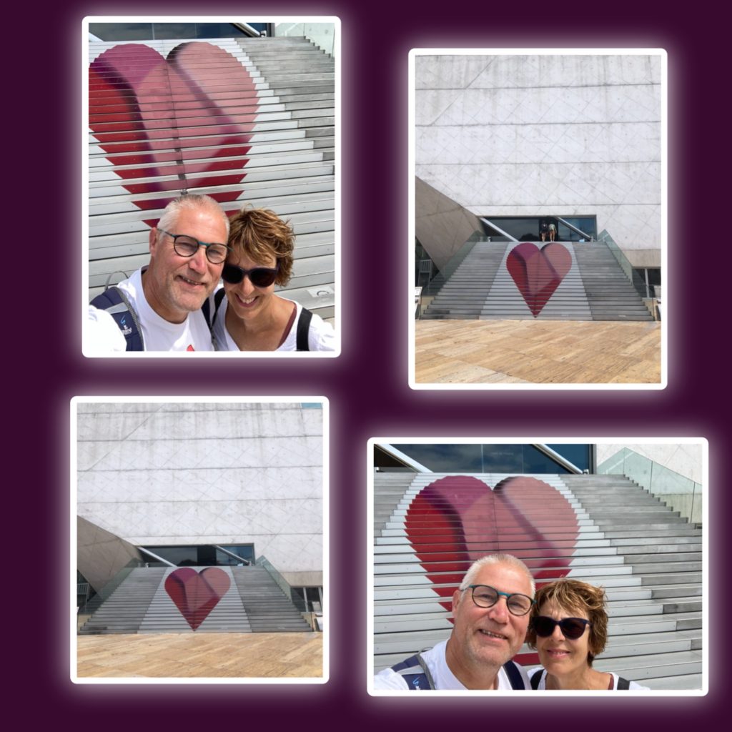 Onze bagage in een kluis in het busstation onder ons appartement gedropt. Op de fiets de berg op naar Casa da Música.