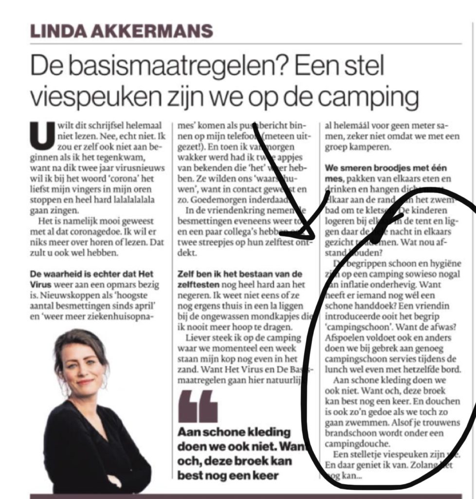 P. S. Er stond deze week een erg toepasselijke column in de krant over ons campingleven?